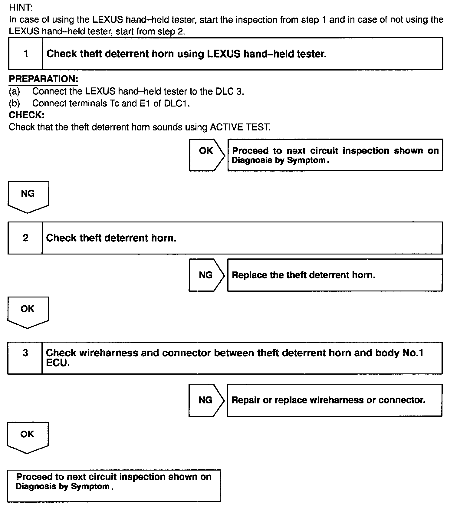 Theft Deterrent Horn Circuit / Body No.1 ECU