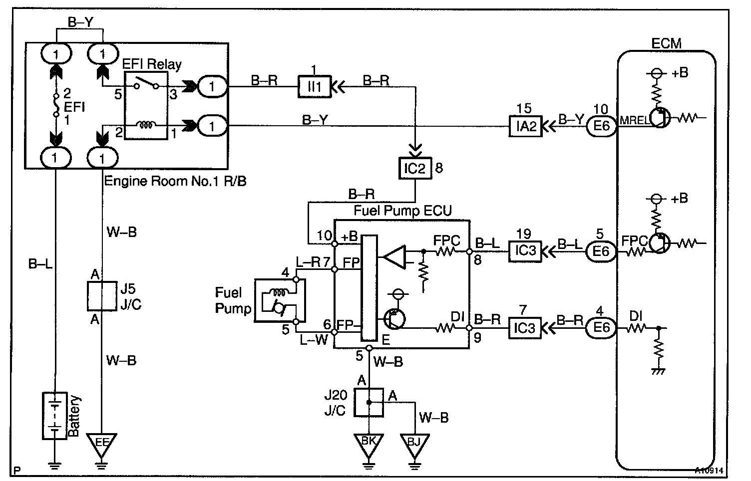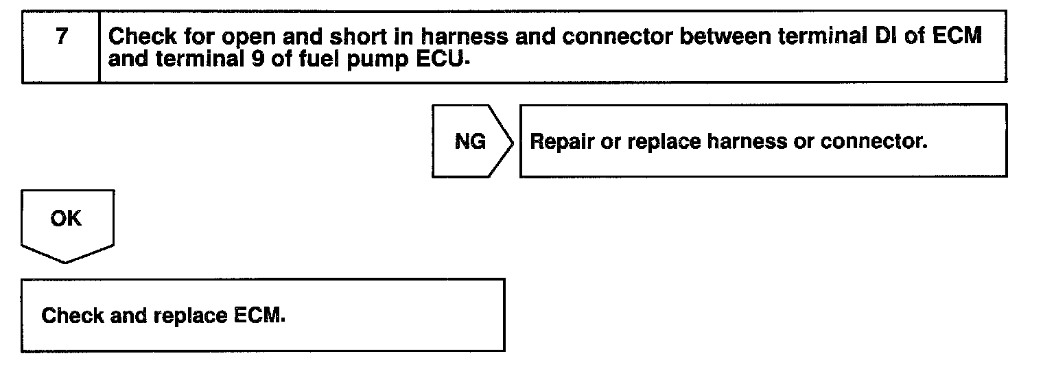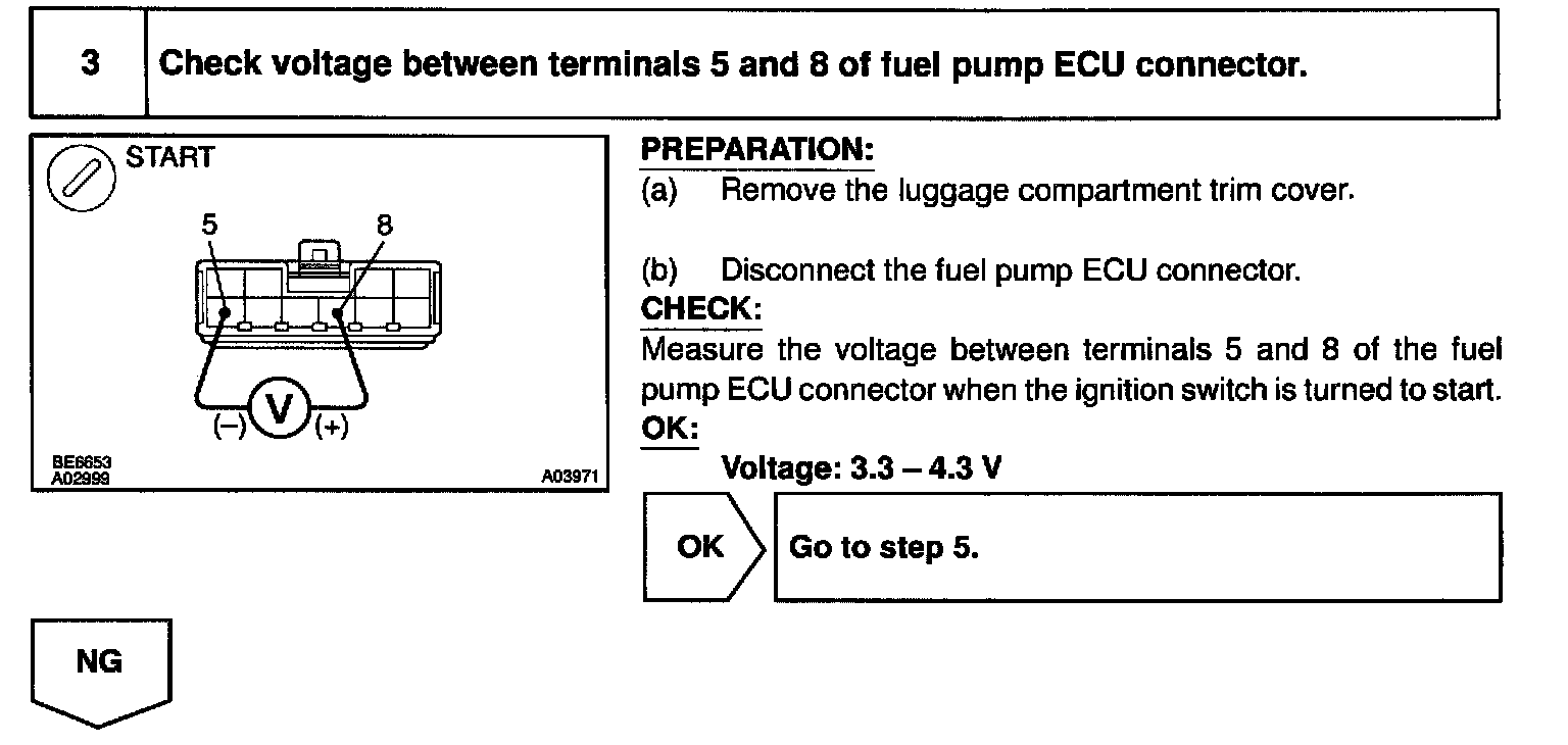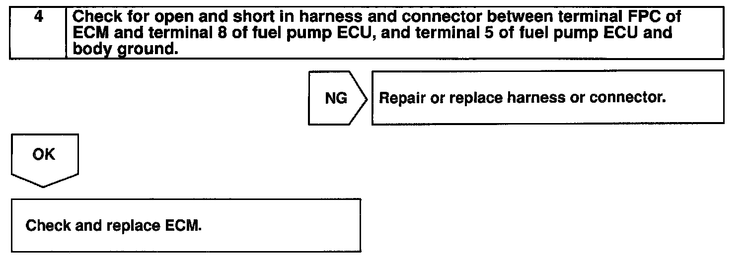 When the idling or light loads, the ECM sends a Low signal (about 1.3 V) to the fuel pump ECU (FPC terminal).