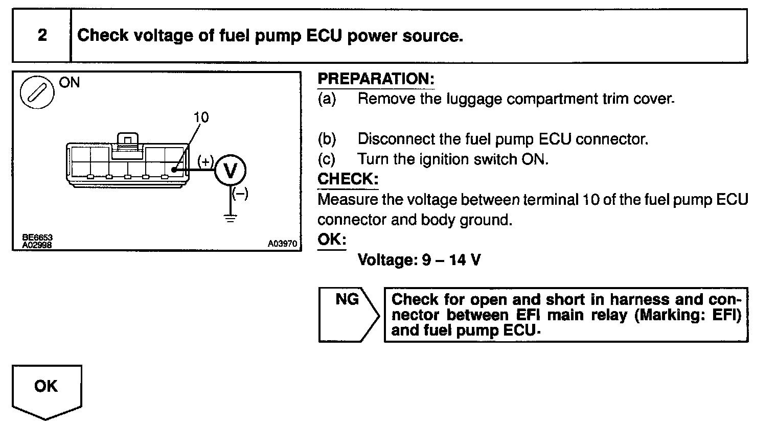The fuel pump ECU then outputs Mid voltage (about 10 V) to the fuel pump so that the fuel pump operates at medium speed.