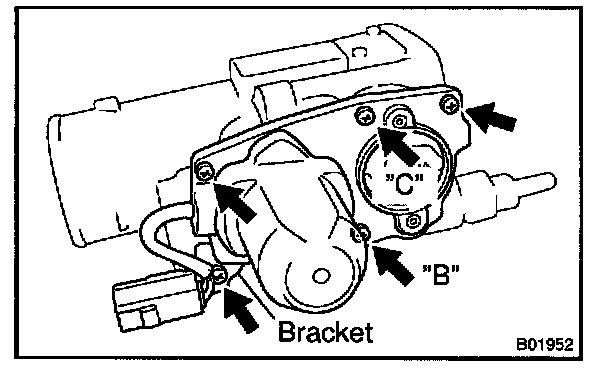 5. Temporarily install the cover with the 2 screws "B" and "C".