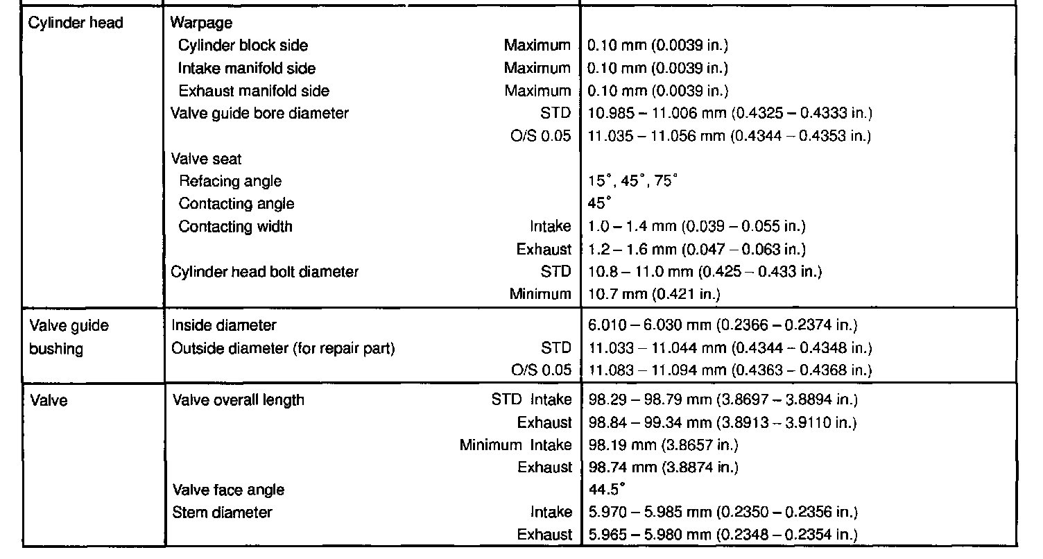 2JZ-GE Engine Cylinder Head Specifications