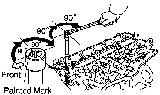 Retighten cylinder head bolts by an additional 90° shown.