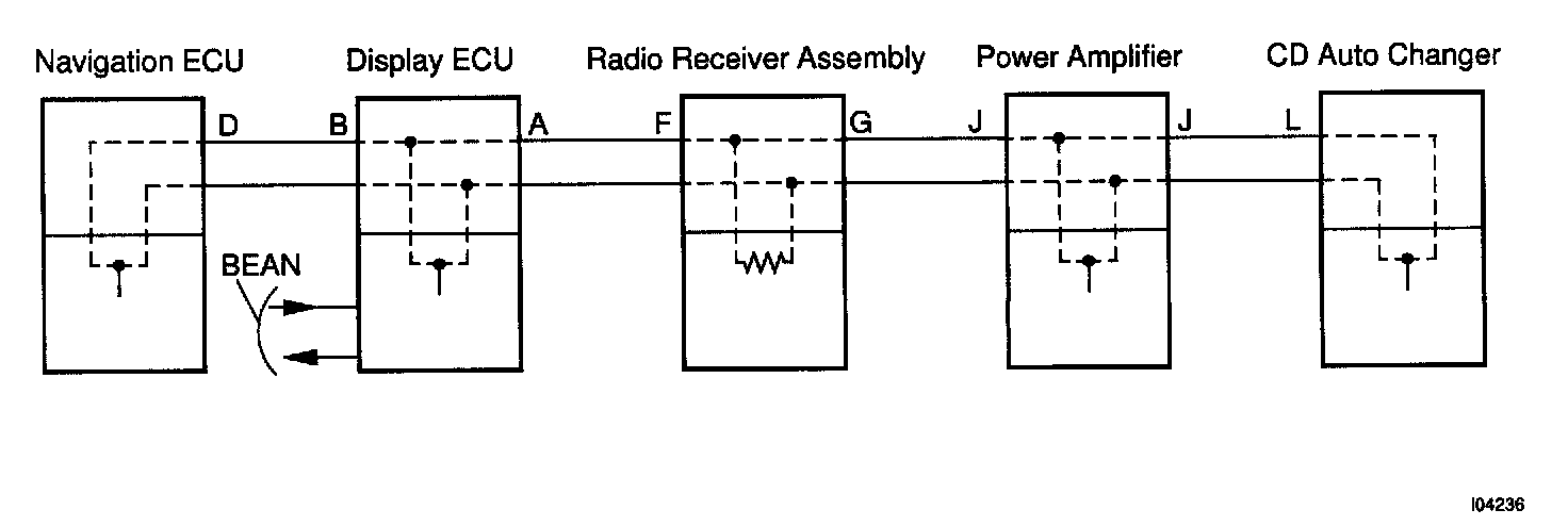 Display ECU is connected between Navigation ECU and Audio head unit, LEXUS navigation system has the structure that makes communication impossible without Navigation ECU, Display ECU or Audio head unit.