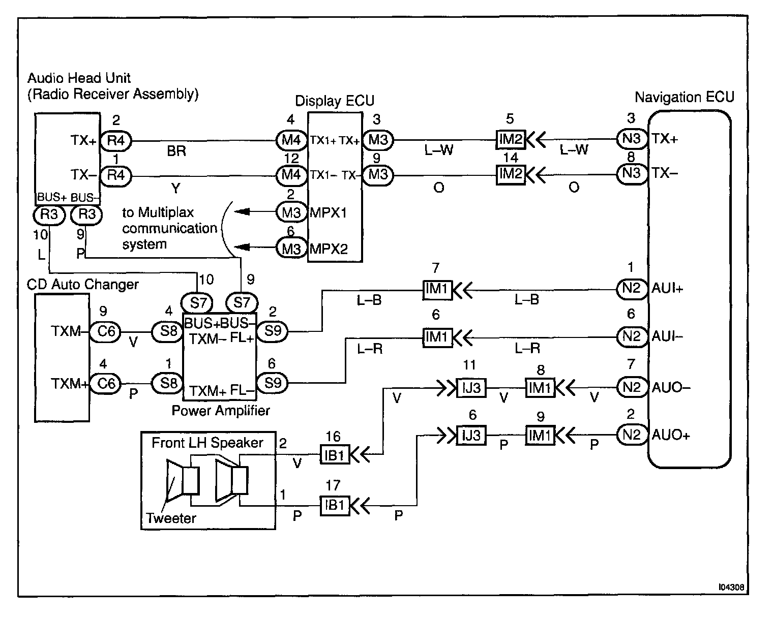 In this AVC-LAN, Navigation ECU becomes the master of the communication, and the audio head unit has a resistance necessary for transmitting the communication.