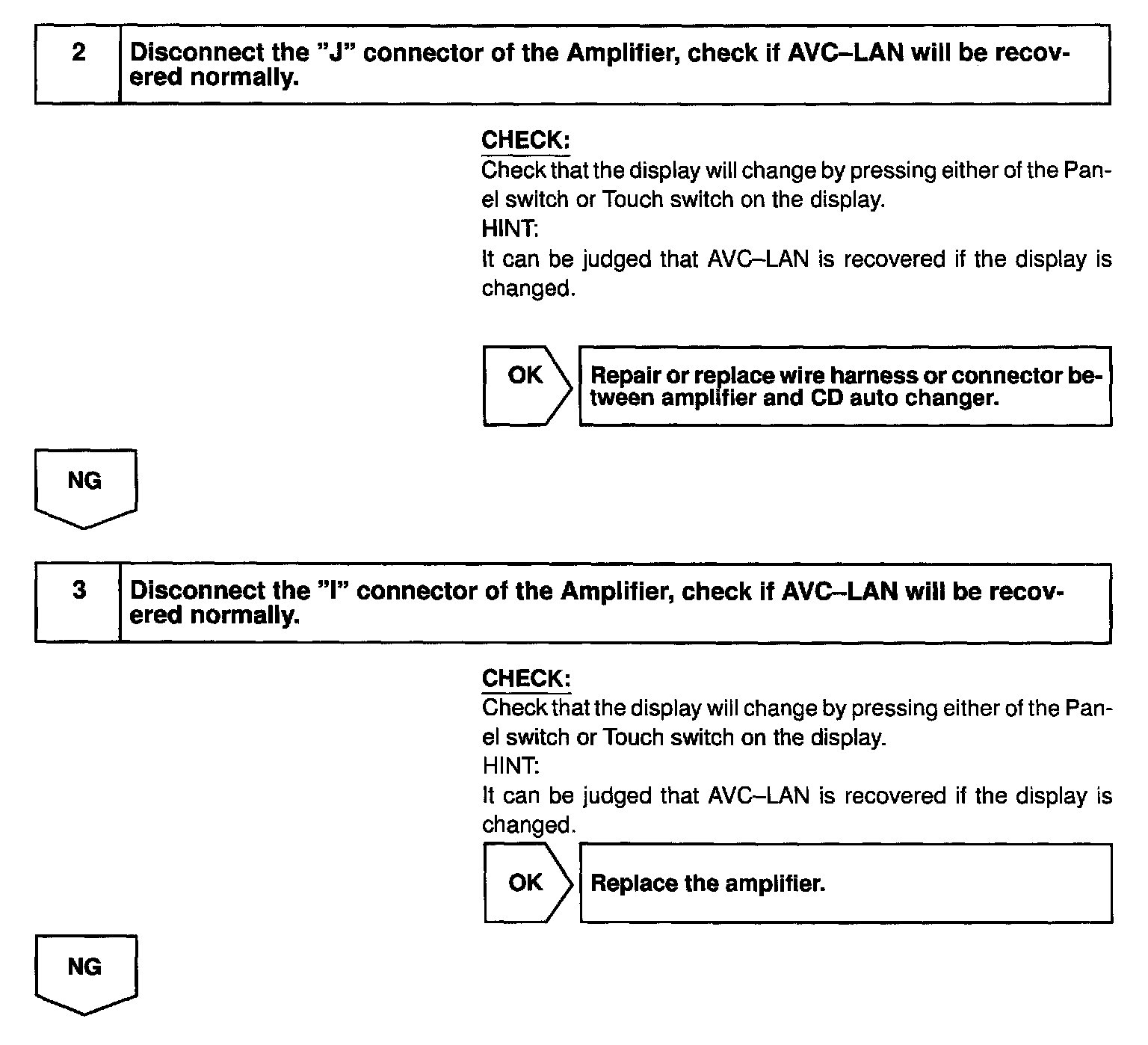 When +B short and GND short occur in this AVC-LAN, LEXUS navigation system will not function normally as the communication is discontinued.