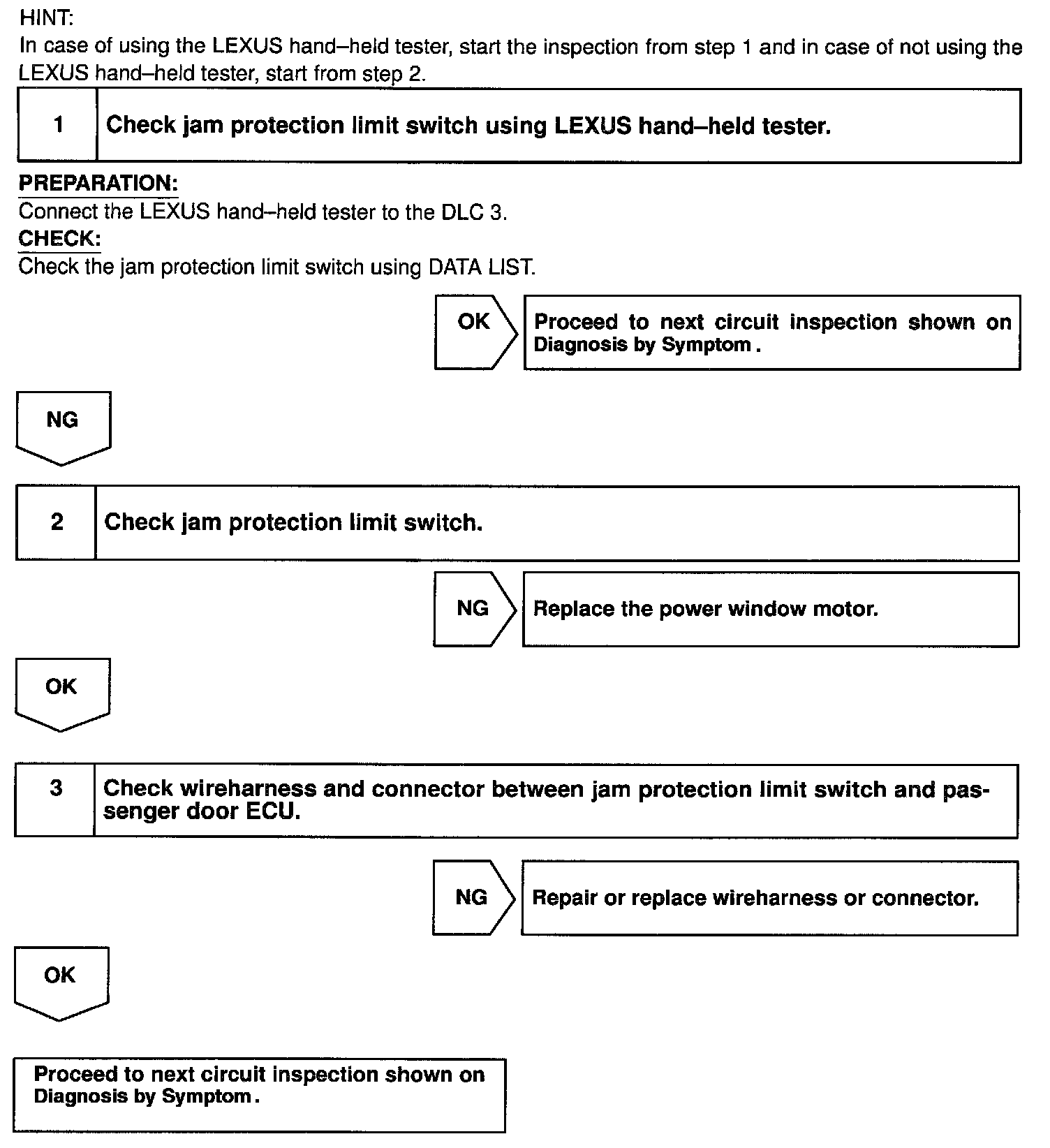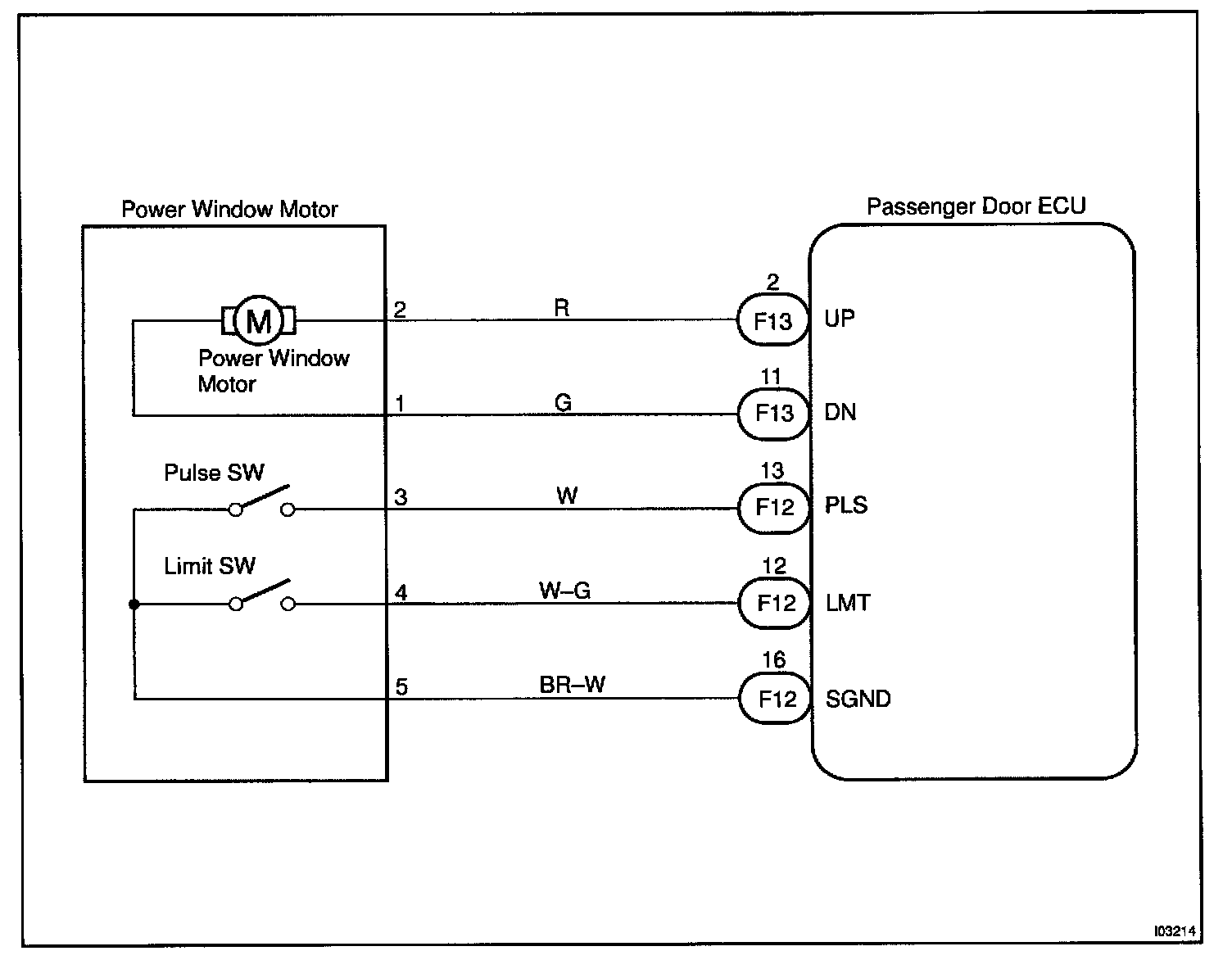 CIRCUIT DESCRIPTIONJam protection limit switch is built-in the power window motor. This switch functions to turn "OFF" before the top dead center, and ECU reads this "OFF" signal resulting in closing the window fully.
