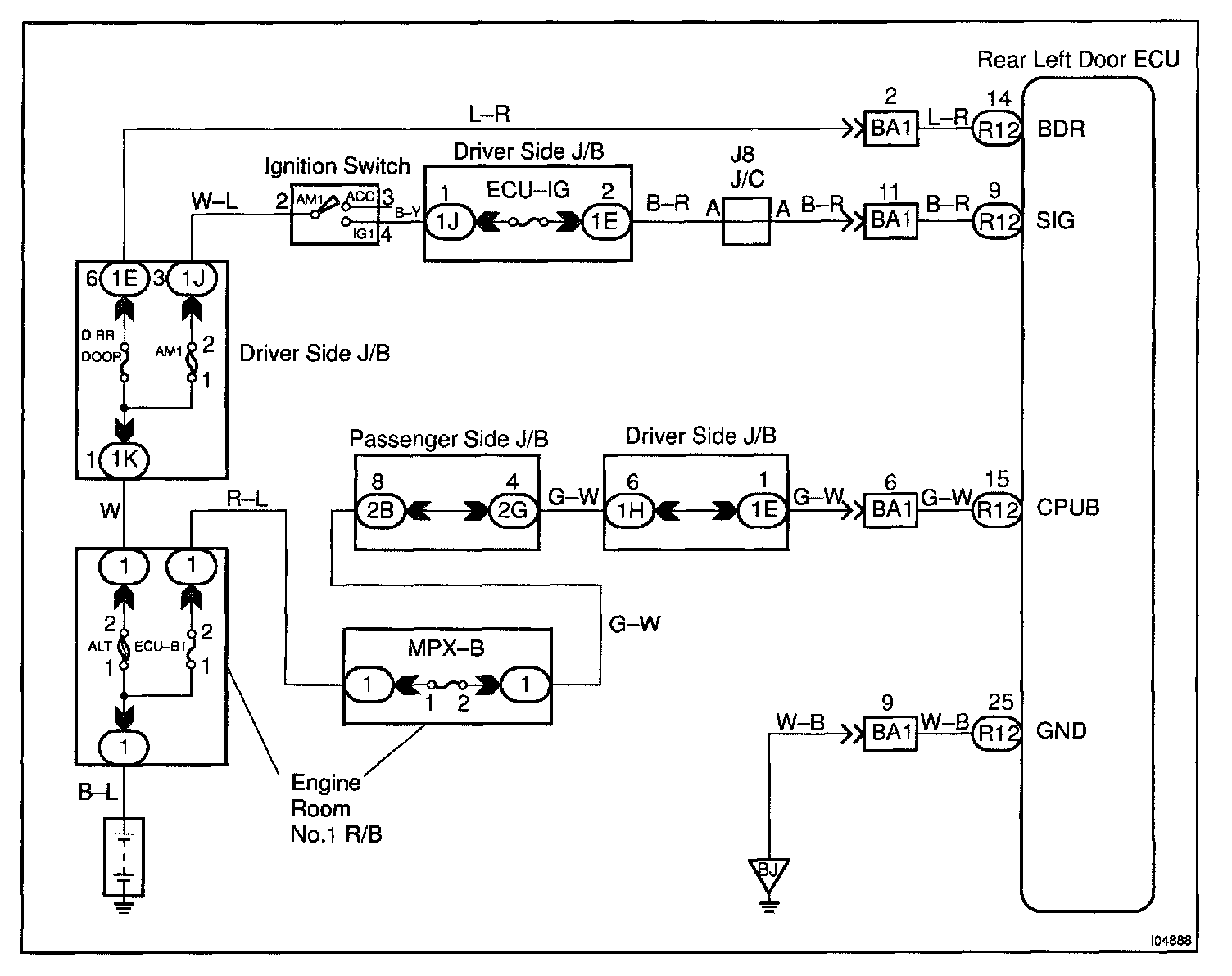This circuit provides power to operate the rear left door ECU.