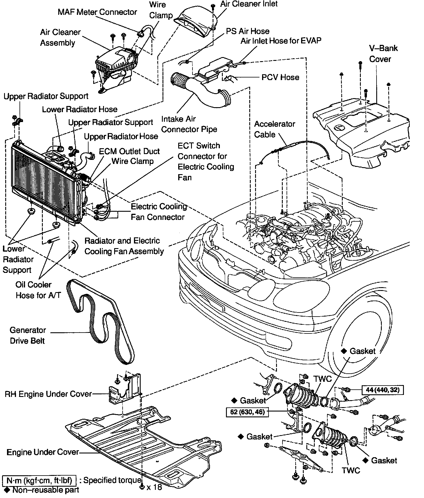 CYLINDER HEAD REPLACEMENT AND OVERHAUL W/ RELATED COMPONENTSRadiator, Air Cleaner Assb., TWC (LH And RH):