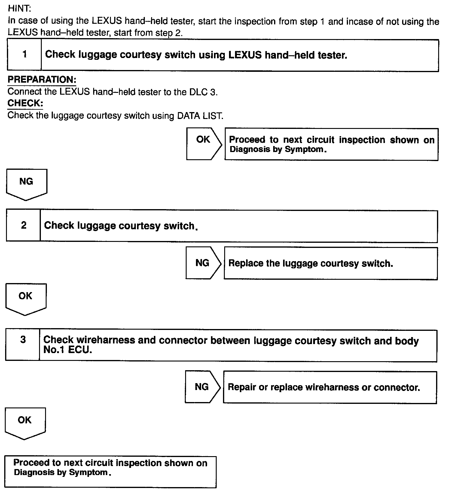 Luggage Courtesy Switch Circuit / Body No.1 ECUCIRCUIT DESCRIPTION