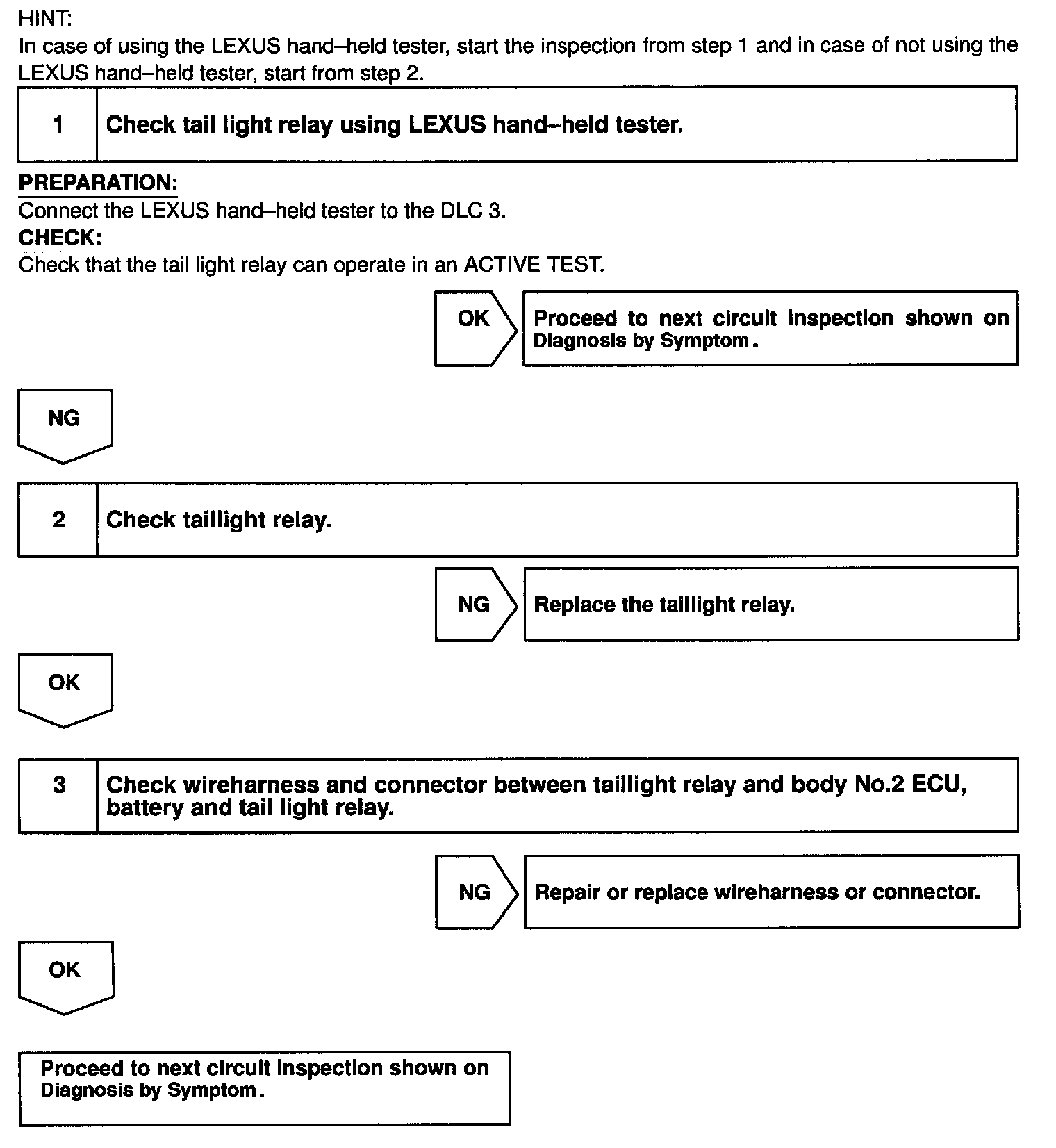 Taillight Relay Circuit / Body No.2 ECU