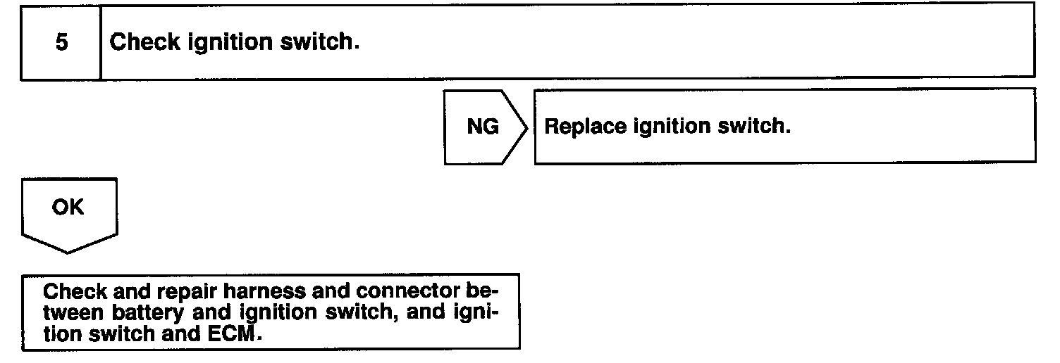 When the ignition switch is turned ON, battery positive voltage is applied to terminal IGSW of the ECM and the EFI main relay (Marking: EFI) control circuit in the ECM sends a signal to terminal MREL of the ECM switching on the EFI main relay.