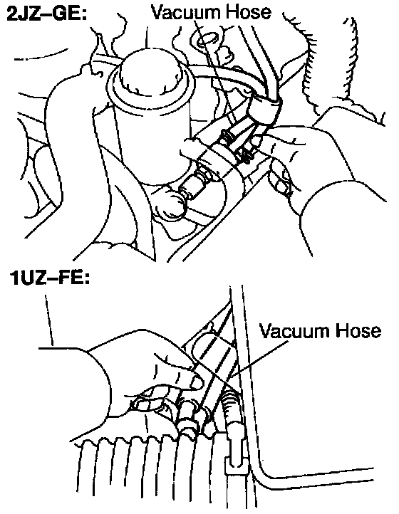 c. Check that the engine rpm decreases when the vacuum hose of the air control valve is pinched.