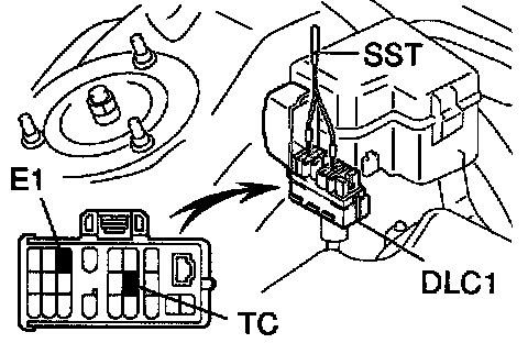 a) Using SST, connect terminals TO and E1 of the DLC1.