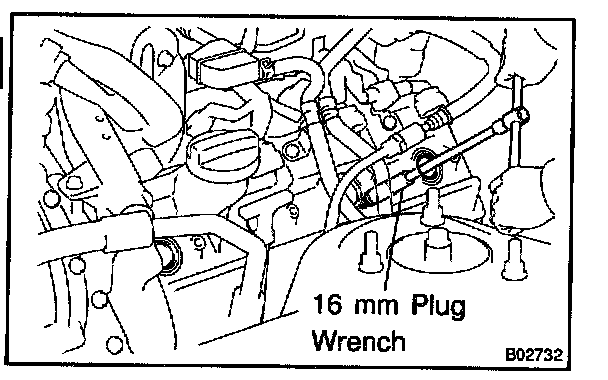 c. Using a 16 mm plug wrench, remove the 8 spark plugs.