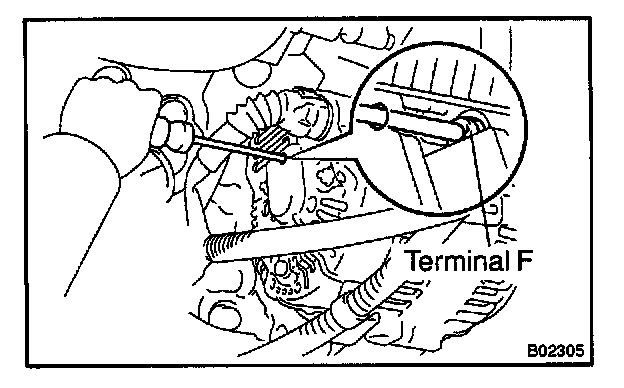 - With terminal F grounded, start the engine and check the voltmeter reading of terminal B.