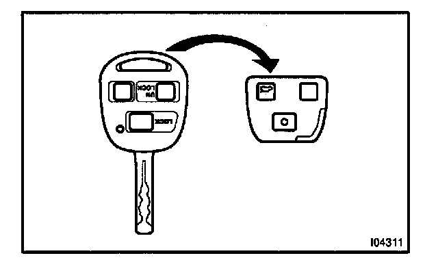 There are 2 ways for erasure of transponder key code, one way is depressing brake pedal and acceleration pedal and the other way is using LEXUS hand-held tester.