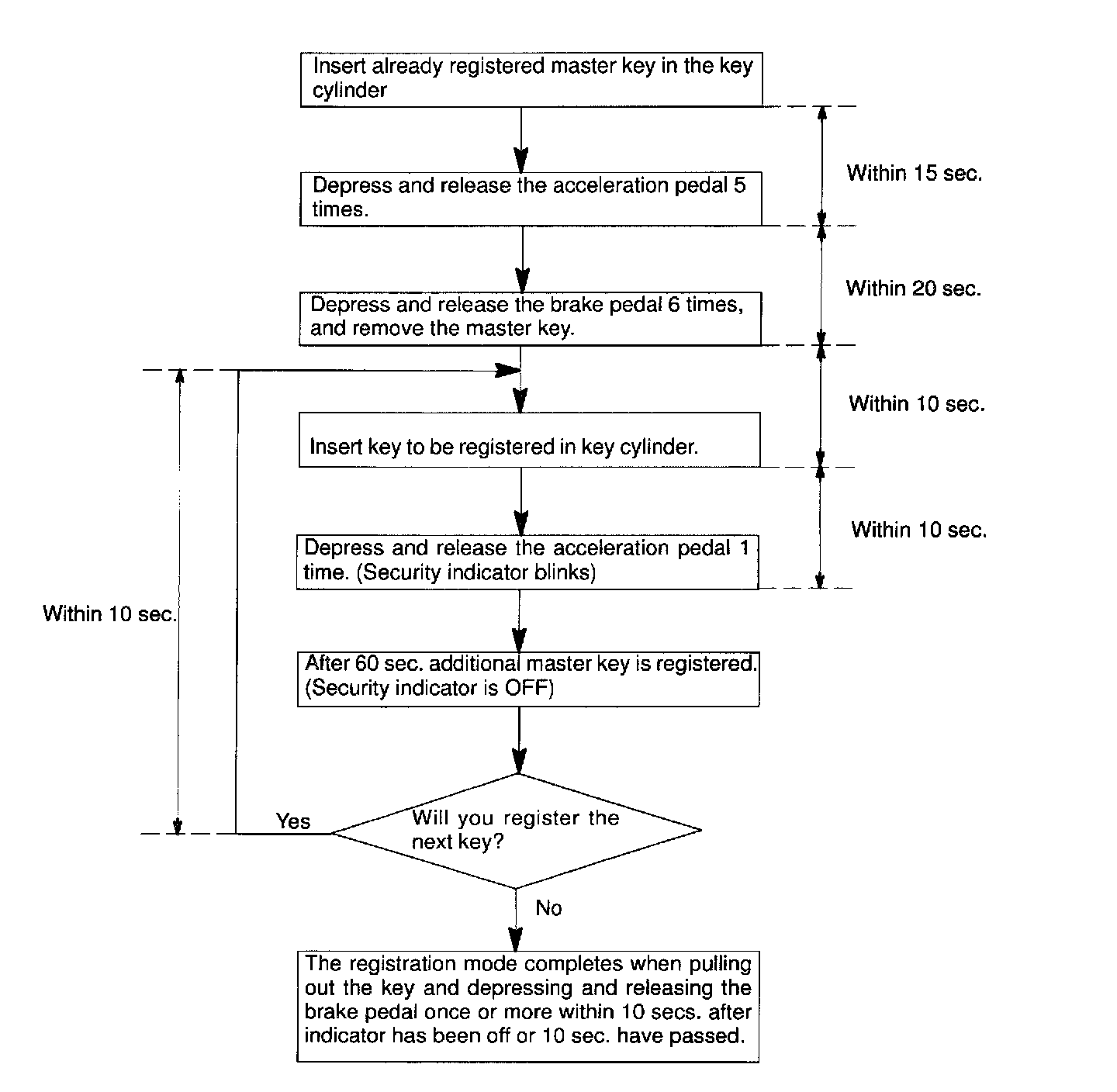 If completing the mode forcibly when more than 1 key code have been registered on the automatic registration mode, perform the following procedures.
