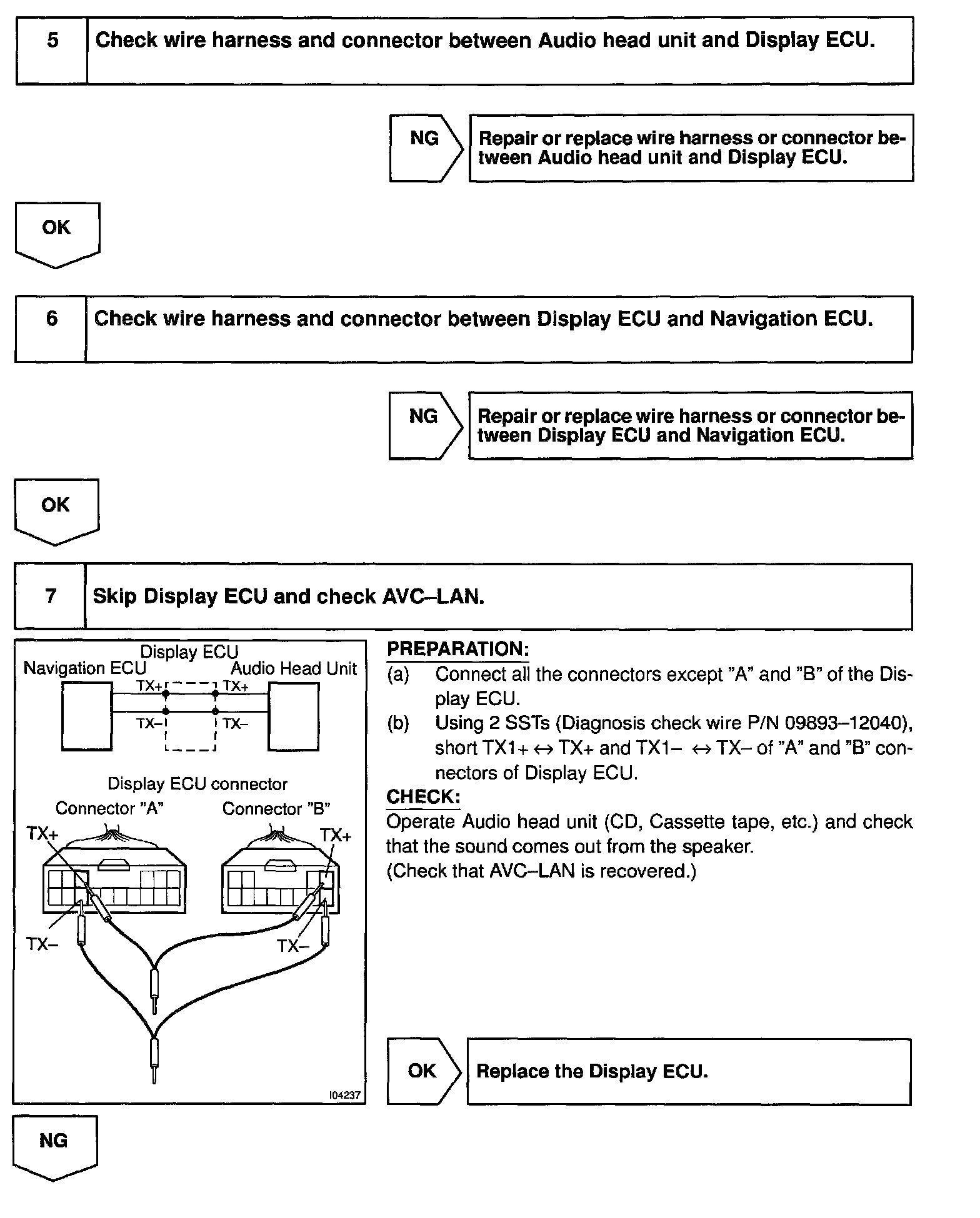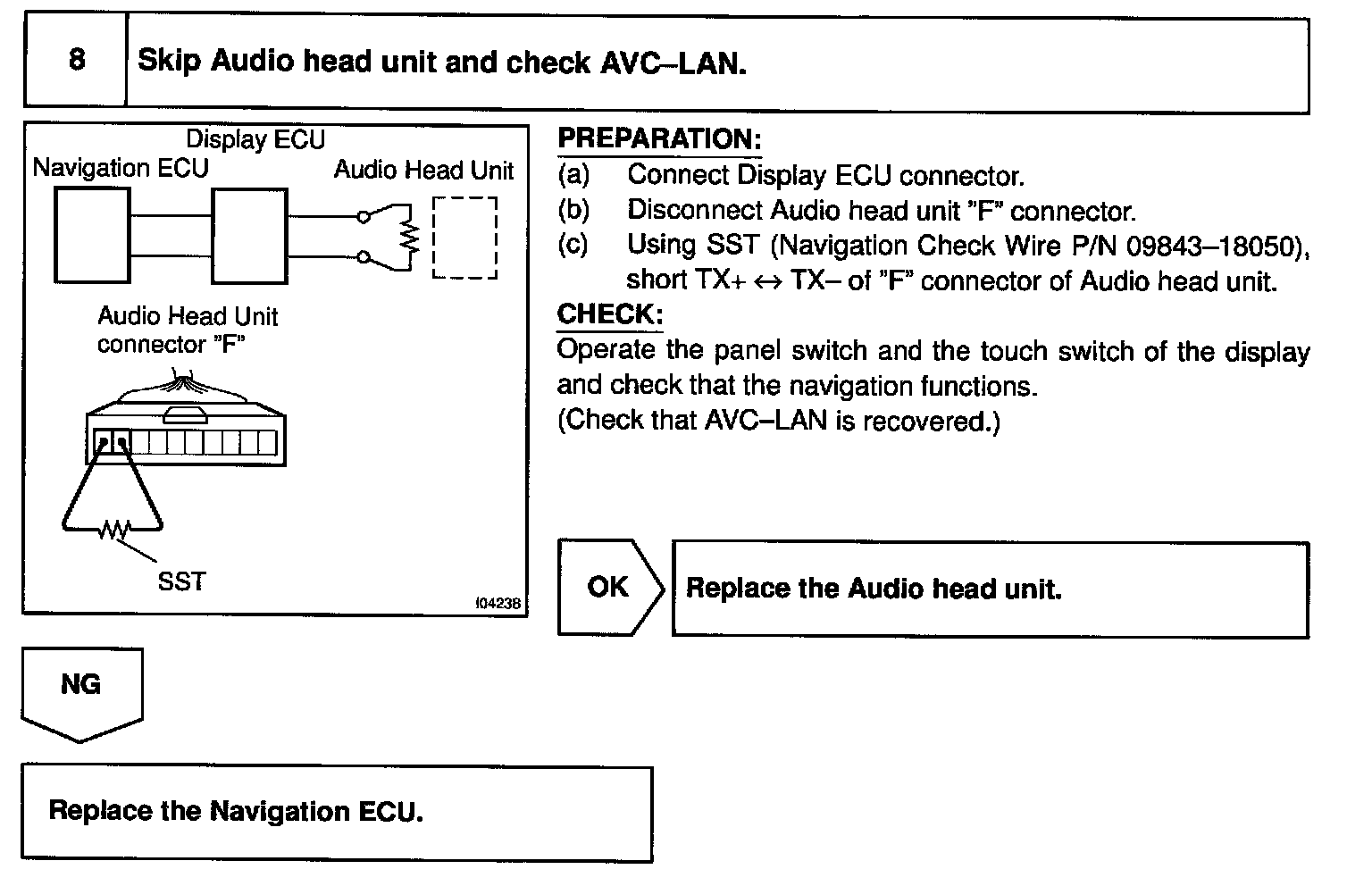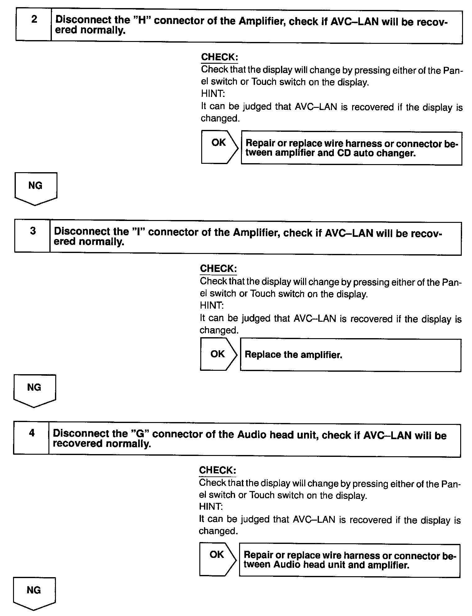 In the case that this AVC-LAN has +B short and GND, LEXUS navigation system will not function normally as the communication is discontinued.