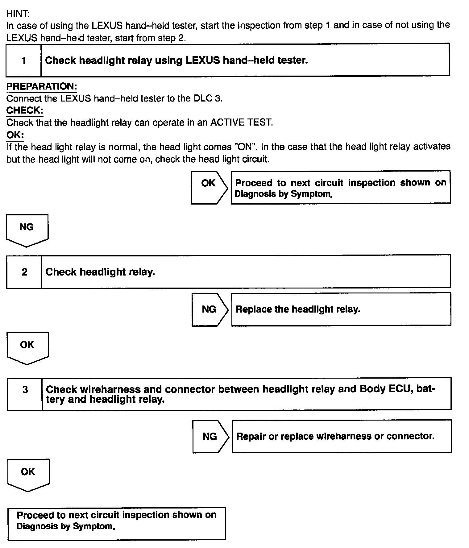 CIRCUIT DESCRIPTIONHead light relay will be "ON" by operating the headlight switch. The transistor which activates the taillight relay has two sorts; one activates directly by the headlight switch for fail safe and the other activates by CPU. the one that activates by CPU has two Systems and prevents the headlight from turning off at the time of one system trouble in the automatic operation circuit.