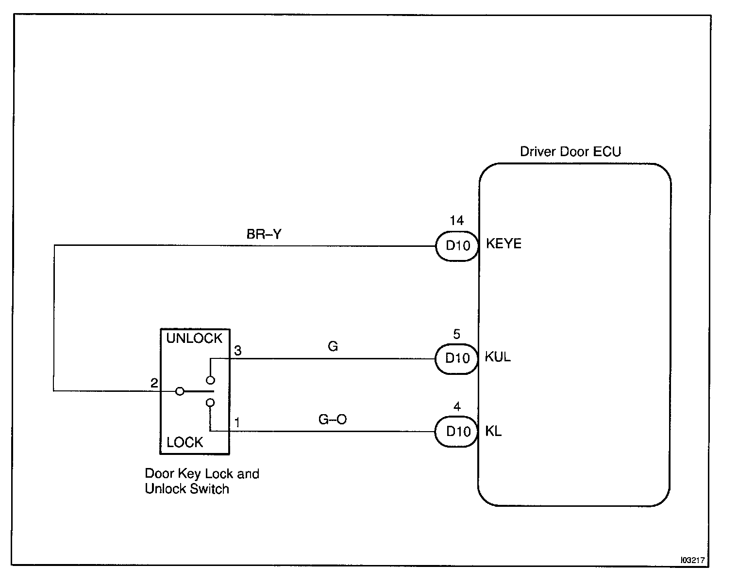 CIRCUIT DESCRIPTIONThe door key lock and unlock switch is built in the door key cylinder. When the key is turned to the lock side,terminal 3 of the switch is grounded and when the key is turned to the unlock side, terminal 2 of the switch is grounded.