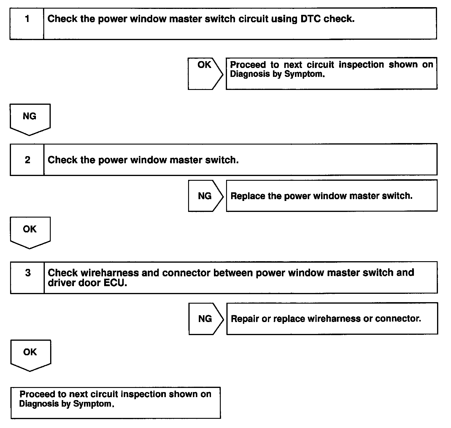 CIRCUIT DESCRIPTIONPower window master switch circuit can be checked using DTC check.
