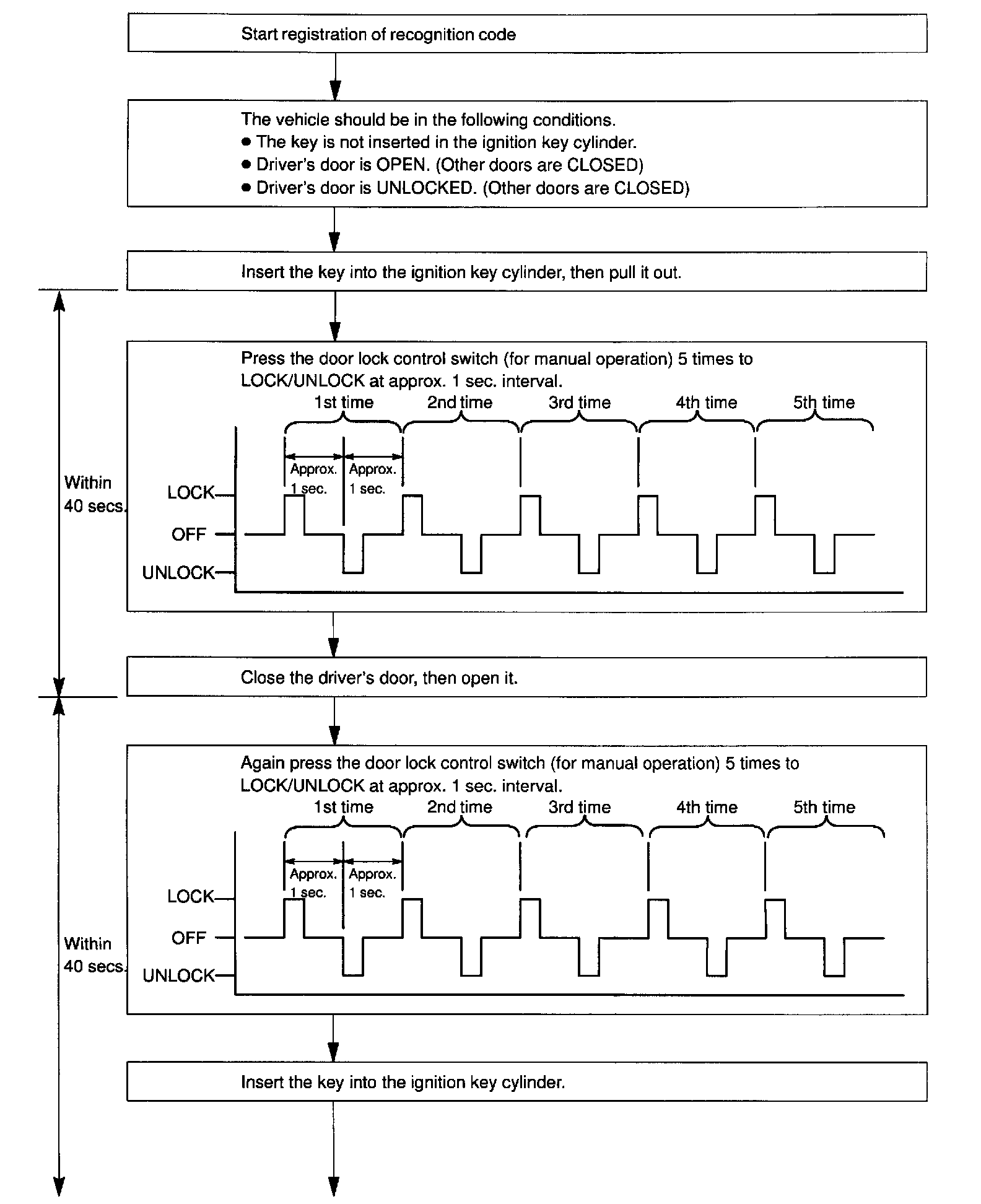 b. Follow the chart on the following page to register the transmitter recognition code at the wireless door lock control receiver.