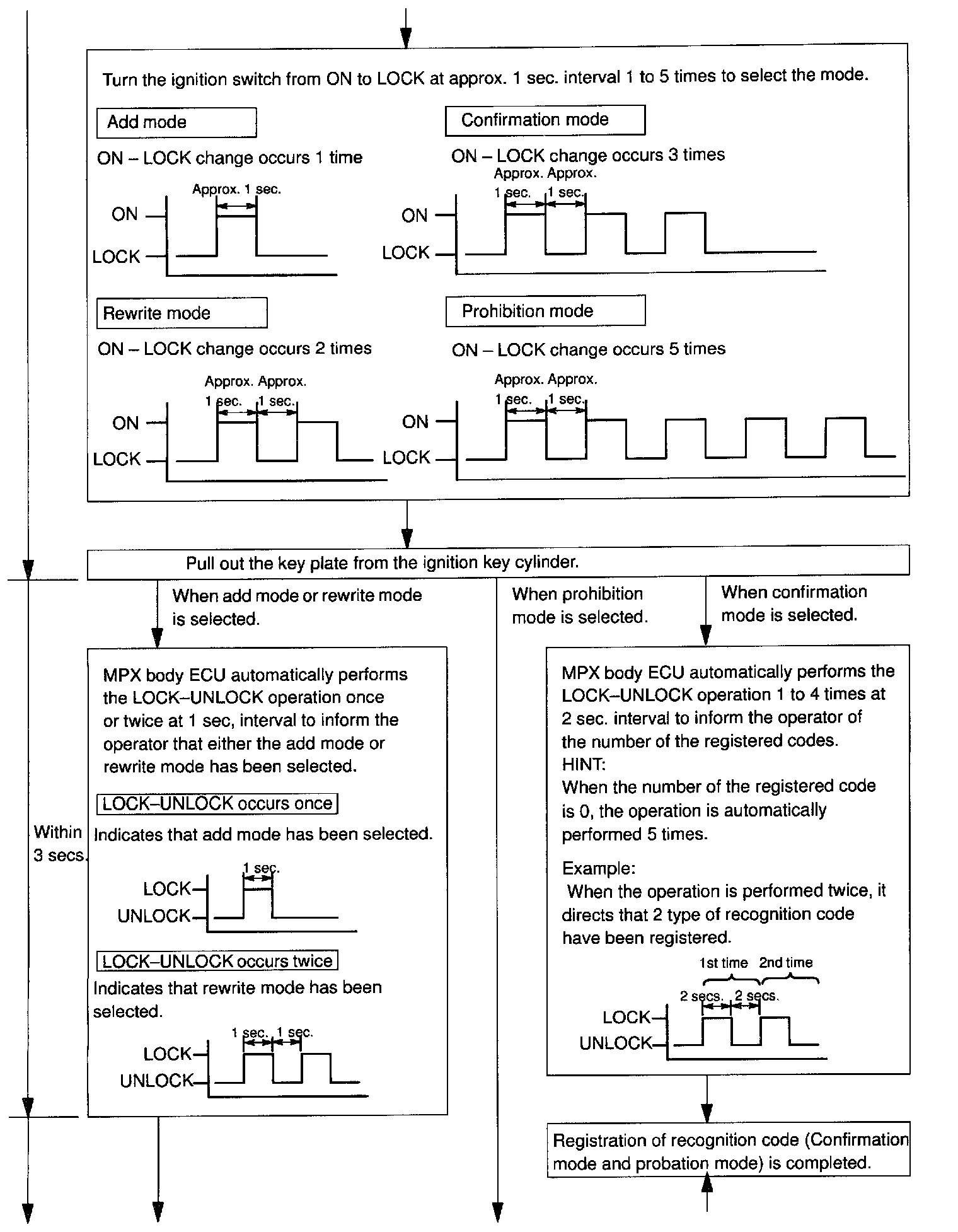 - The confirmation mode is for confirming few many recognition codes are already registered before you register additional recognition codes.