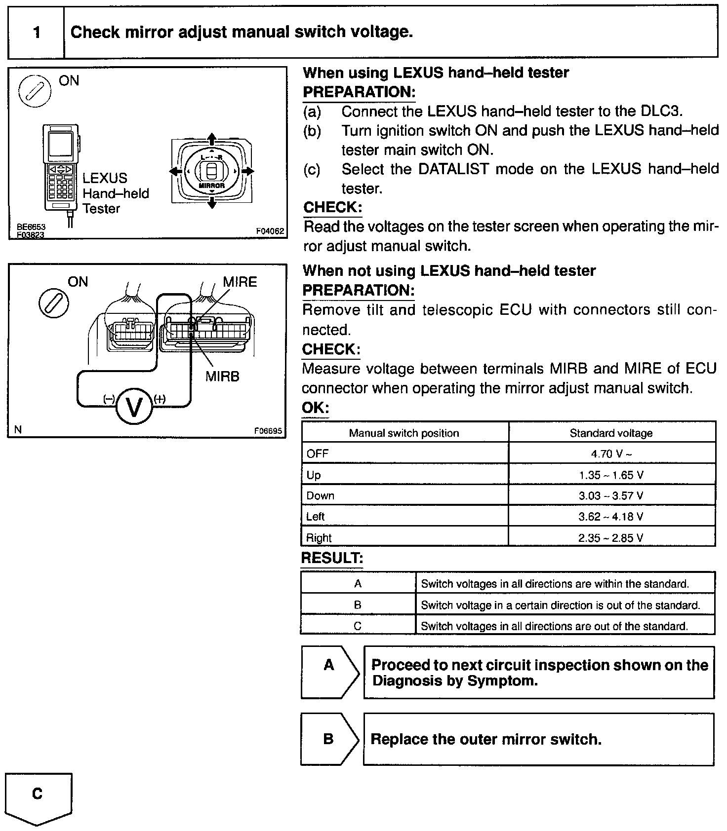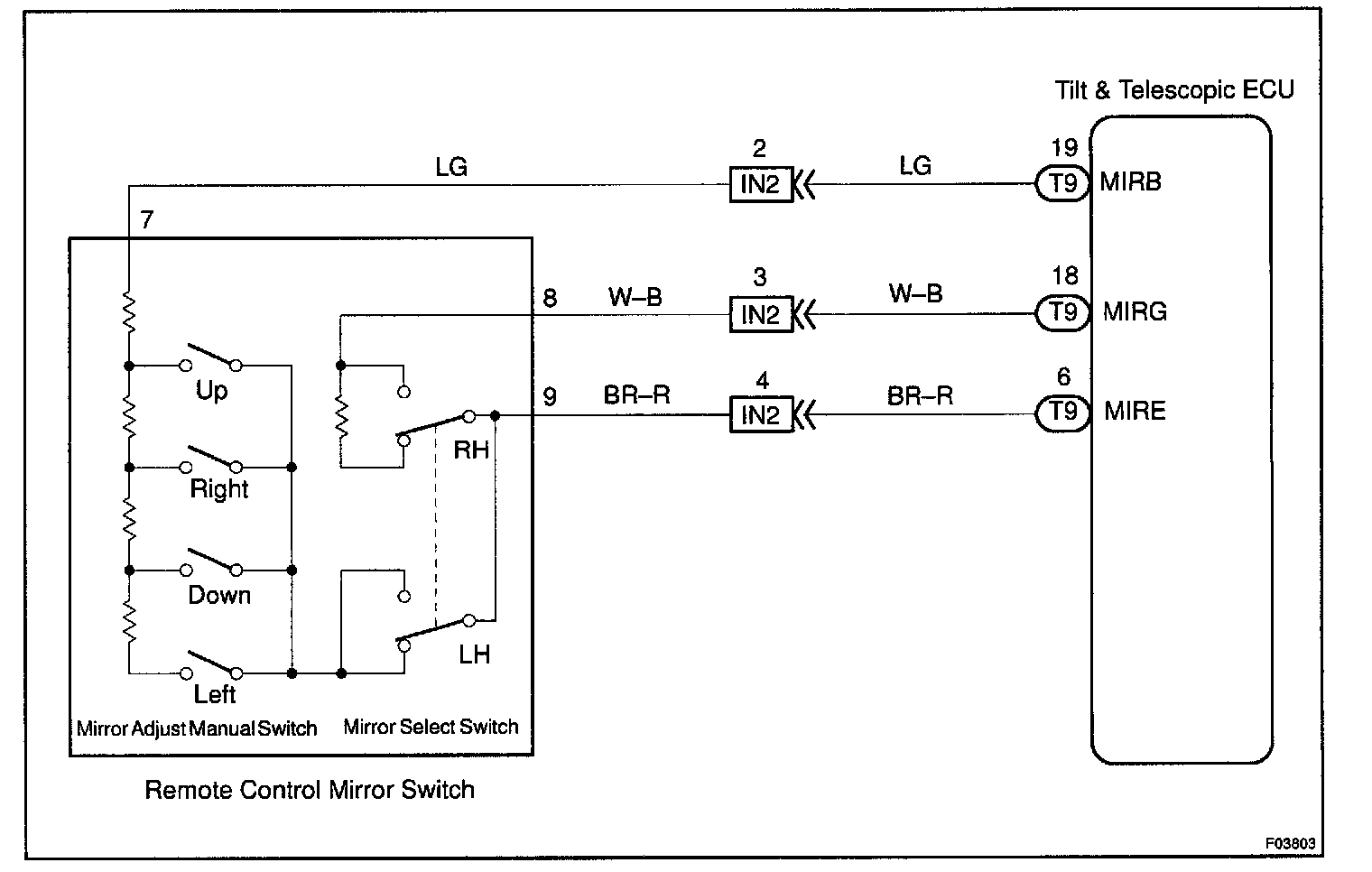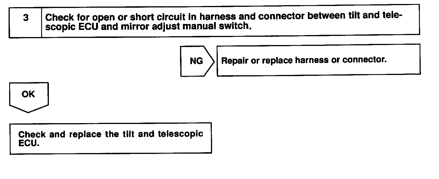 The different voltage signals which are occurred by operating the adjust manual switch are sent to the tilt and telescopic ECU.