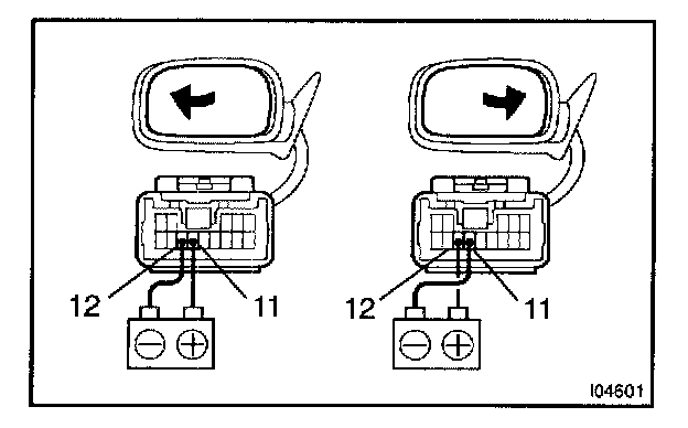 a. Connect the positive (+) lead from the battery to terminal 11 and negative (-) lead to terminal 12, then check that the mirror turns to left side.