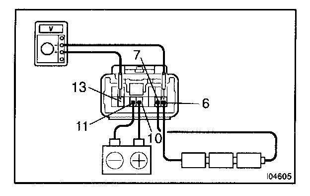 c. Connect the positive (+) lead from the voltmeter to terminal 13 and the negative (-) lead to terminal 6.