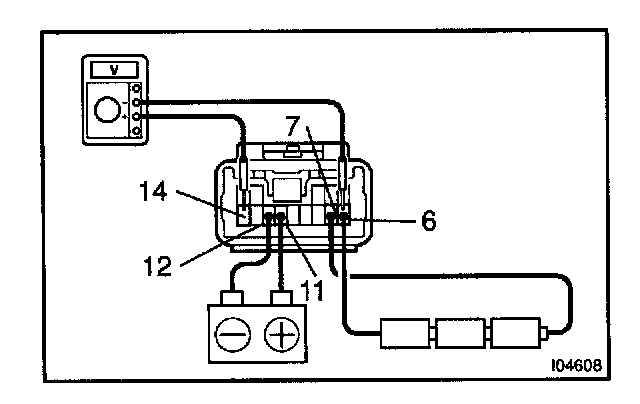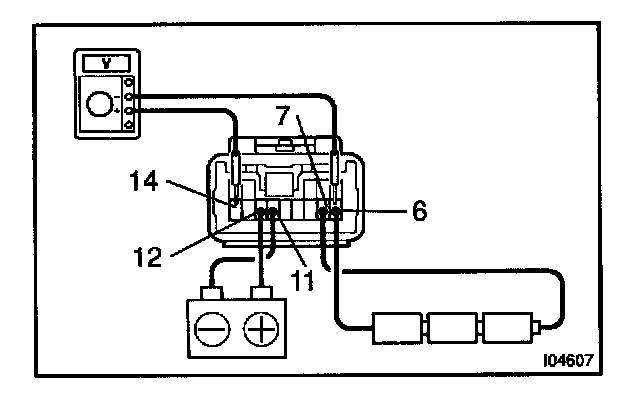 f. Connect the positive (+) lead from the voltmeter to terminal 14 and negative (-) lead to terminal 6.