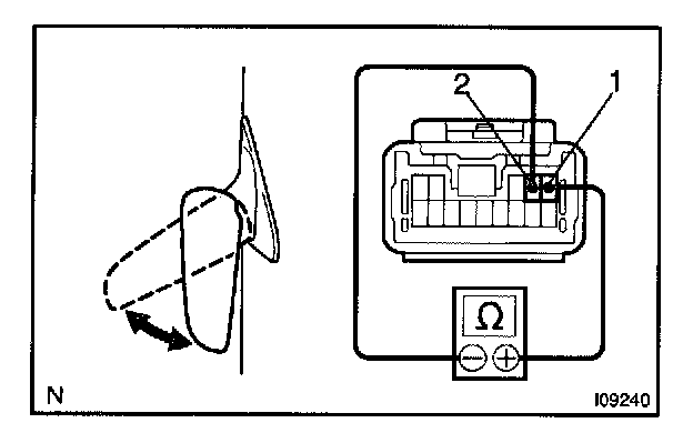 2. INSPECT MIRROR SWITCH RESISTANCE
