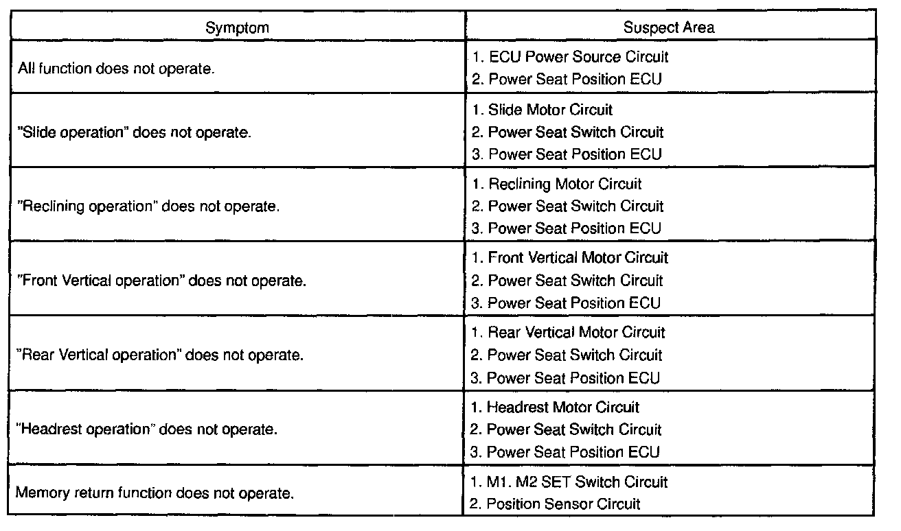 - If the trouble still reappears even through there are no abnormalities in any of the other circuits, then check and replace the Power Seat Position ECU as the last step.