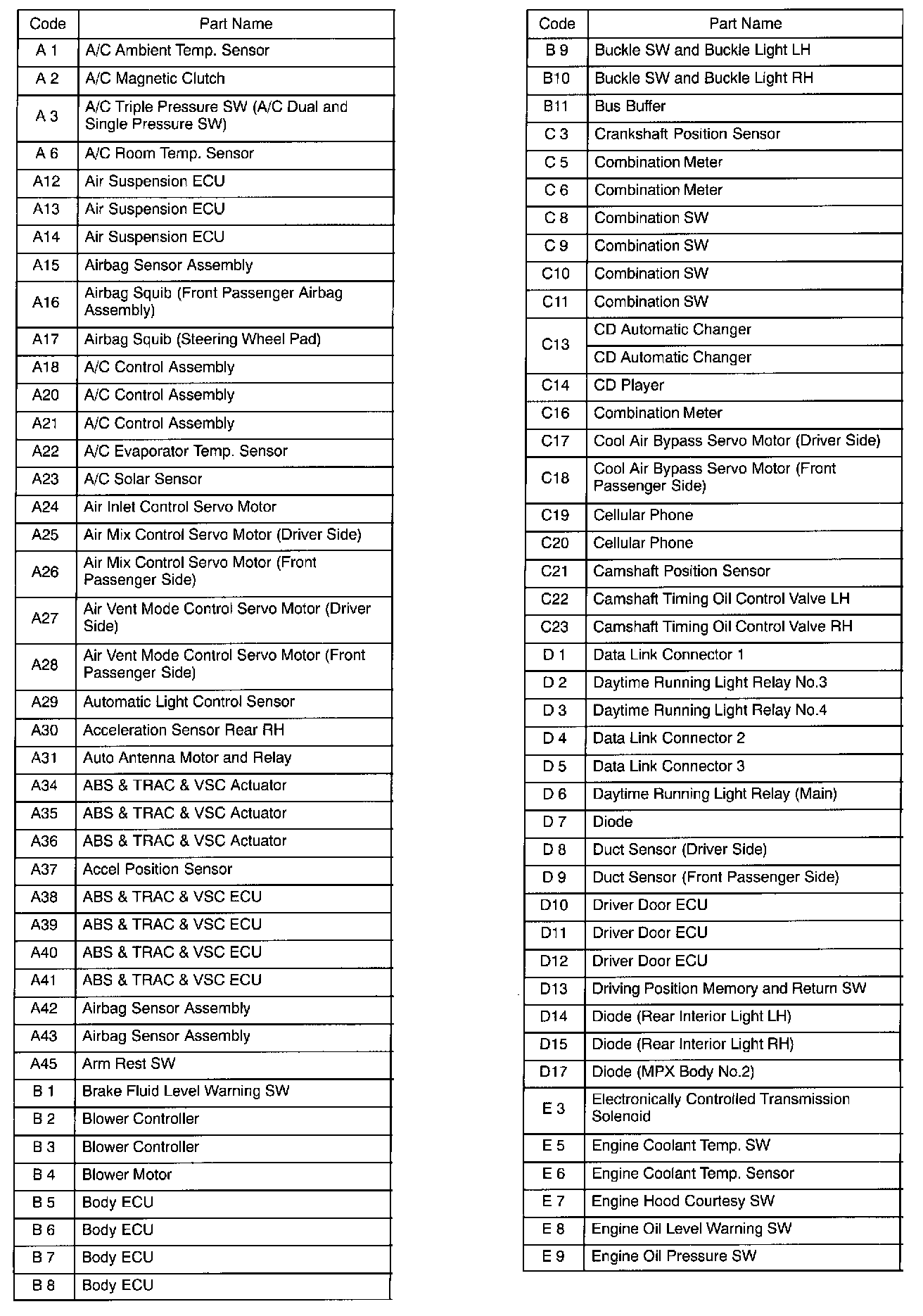 Connector Code Lists