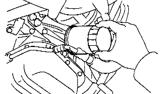 d. Tighten the oil filter by hand until the rubber gasket contacts the seat of the filter mounting.