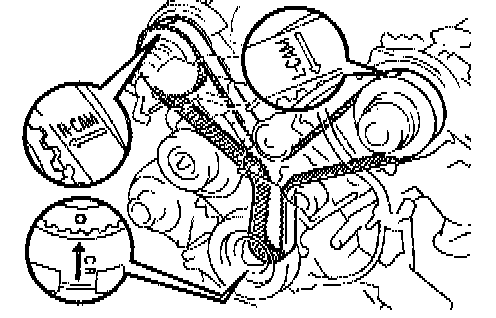 c. Check that each pulley aligns with the timing marks as shown in the illustration.
