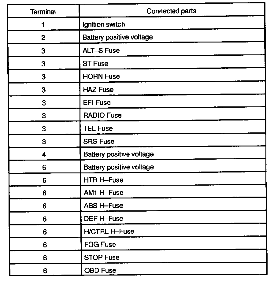 Remove the fuse from the junction block and inspect the connector on junction block side.