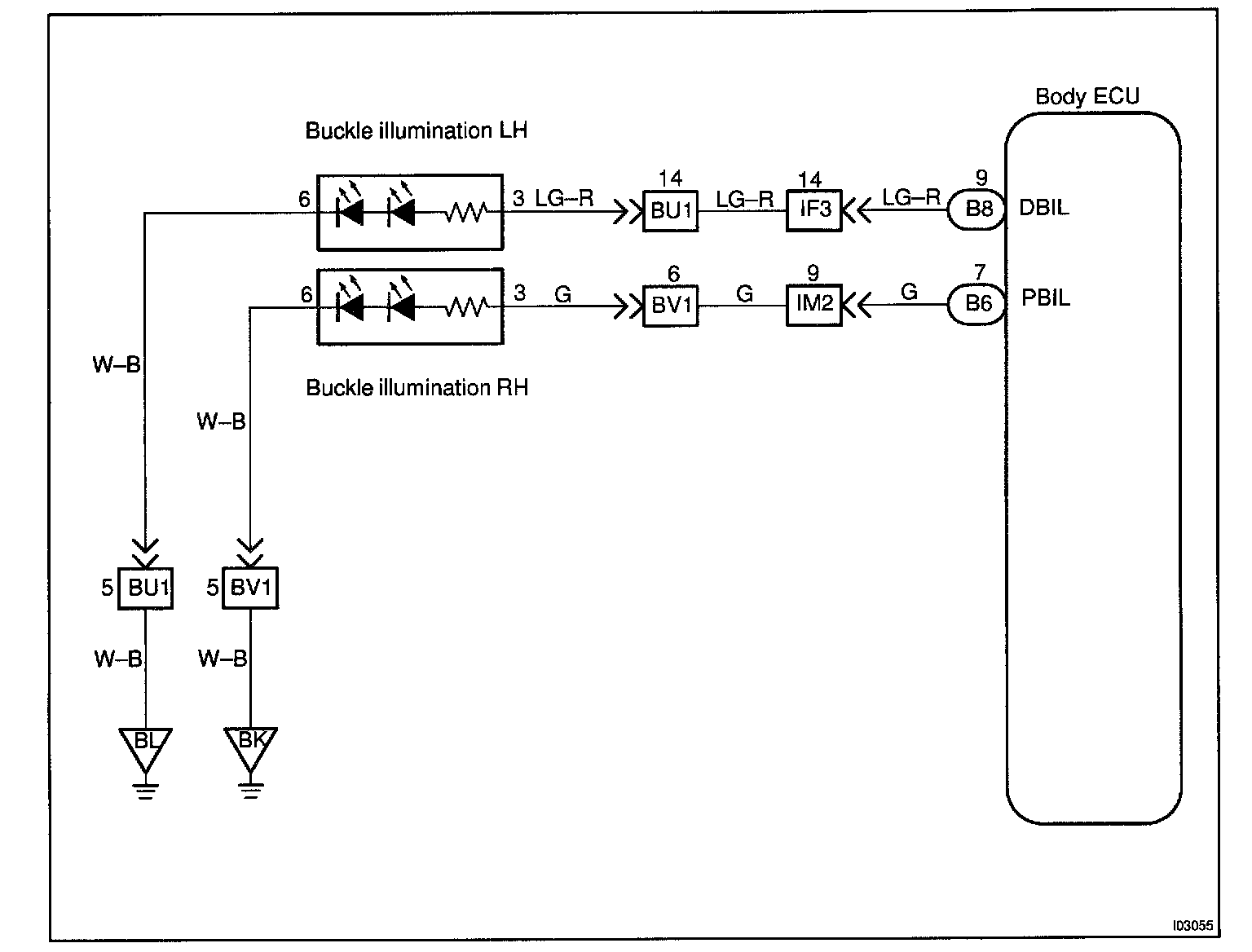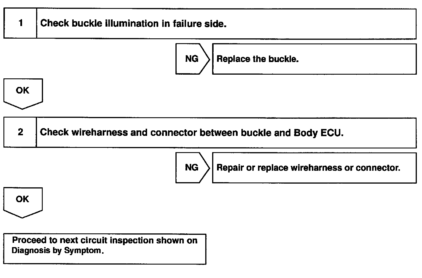 Receiving the courtesy signal from the door ECU, the Body ECU will make the buckle illustration on the opened door side come on.