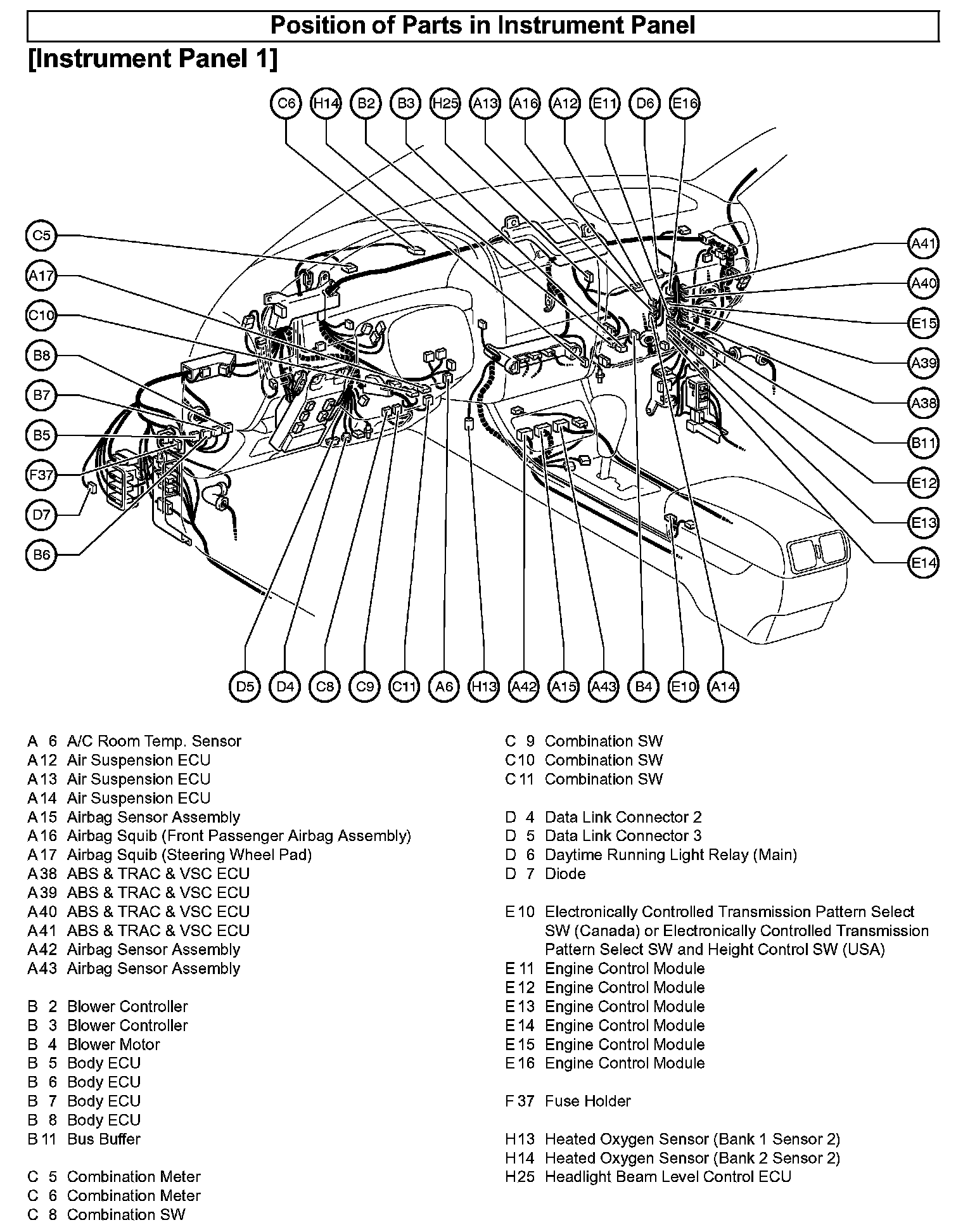DLC - Position Of Parts In Instrument Panel: