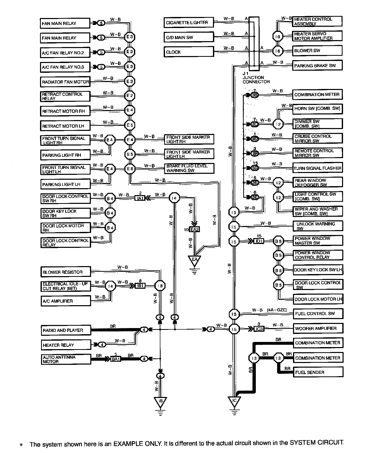 The ground points circuit diagram shows the connections from all major parts to the respective ground points. When troubleshooting a faulty ground point, checking the system circuits which use a common ground may help you identify the problem ground quickly. The relationship between ground points (EA,IB and IC shown) can also be checked this way.