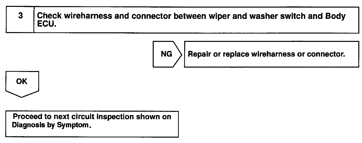 Body ECU judges the switch position with the terminal voltage of the wiper and washer switch and runs the wiper motor.