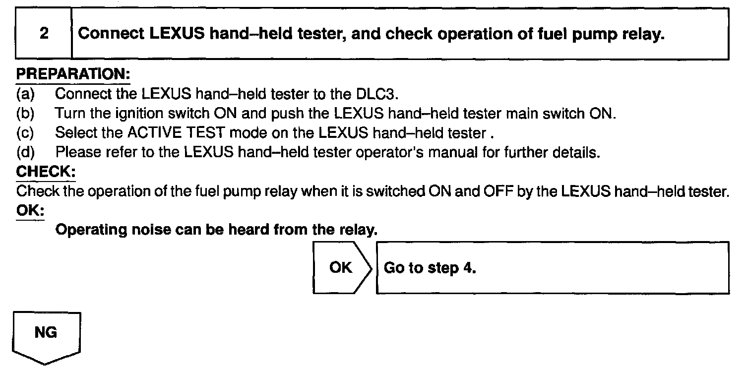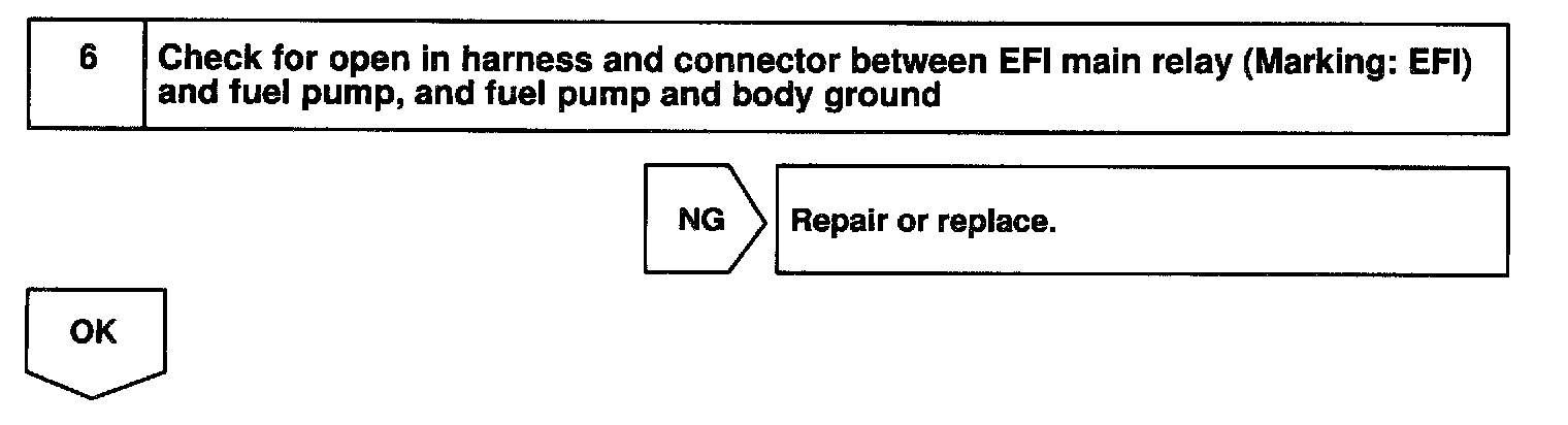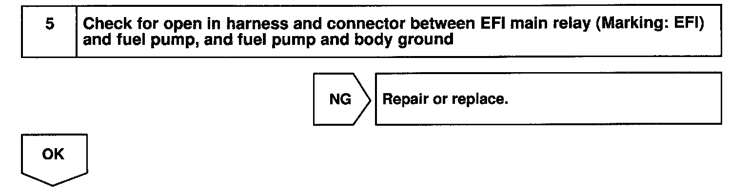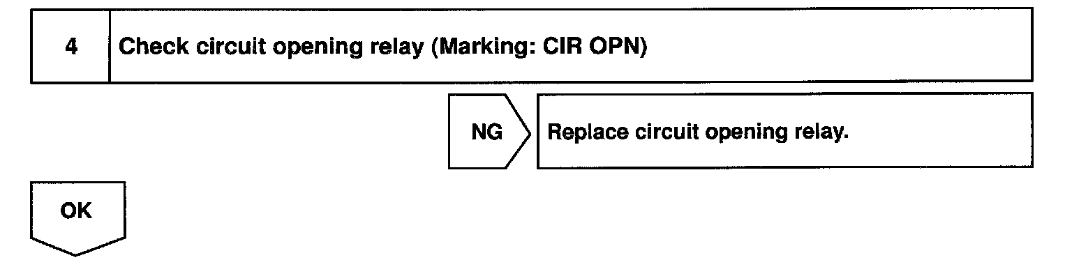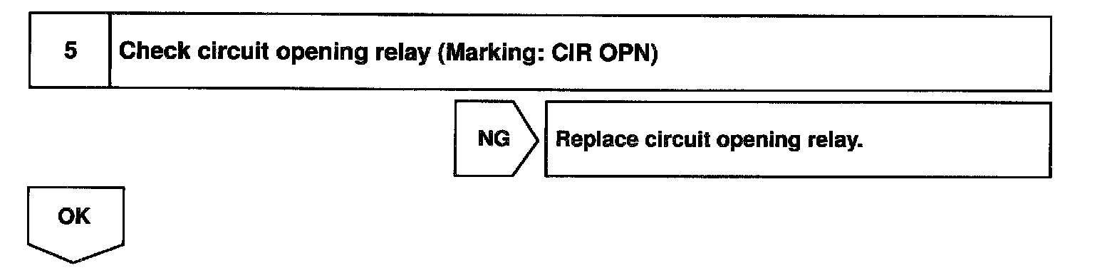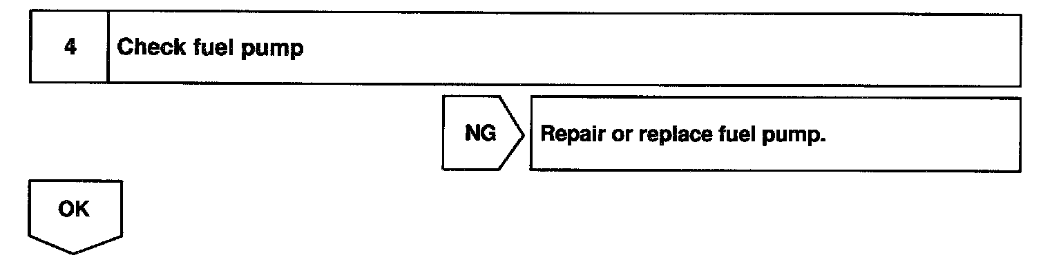 When the STA signal and NE signal are input to the ECM, Tr1 is turned ON, current flows to coil of the circuit opening relay, the relay switches on, power is supplied to the fuel pump and the fuel pump operates. While the NE signal is generated (engine running), the ECM keeps Tr1 ON (circuit opening relay ON) and the fuel pump also keeps operating.