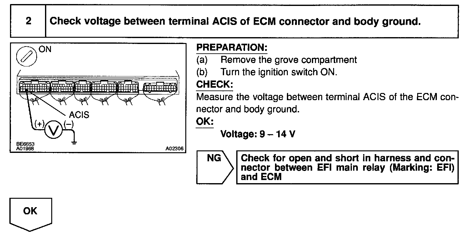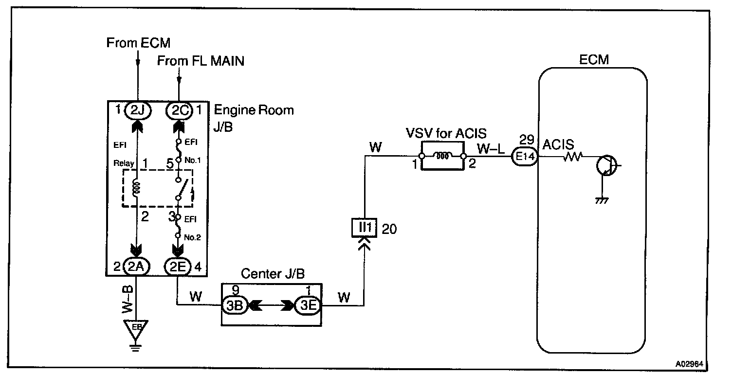 This circuit opens and closes the Intake Air Control Valve (IACV) in response to the engine load in order to increase the intake efficiency (ACIS: Acoustic Control Induction System).