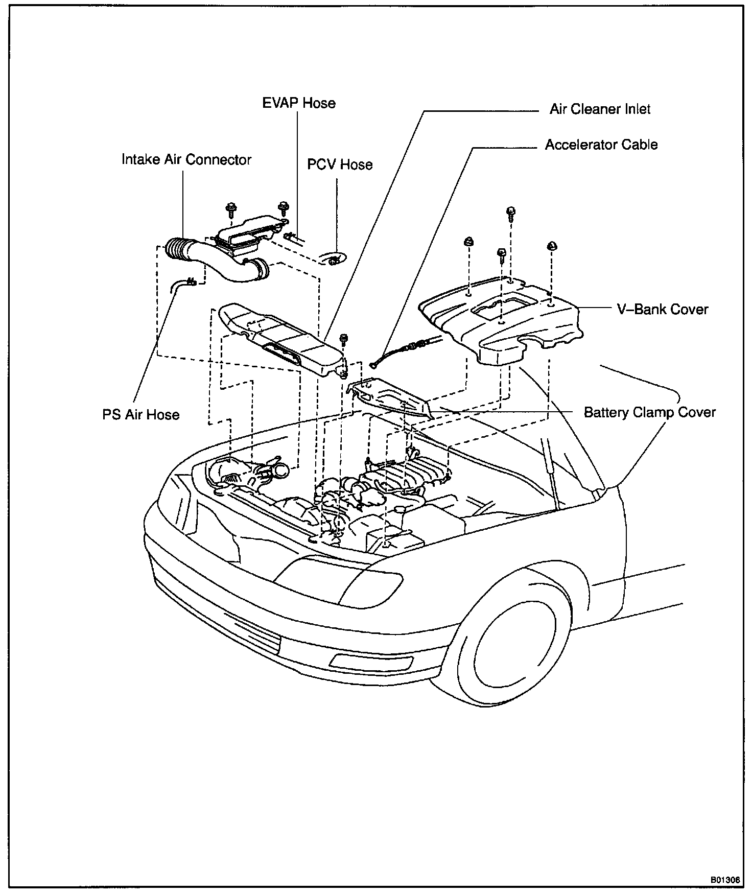 2. REMOVE BATTERY CLAMP COVER, AIR CLEANER INLET AND INTAKE AIR CONNECTOR