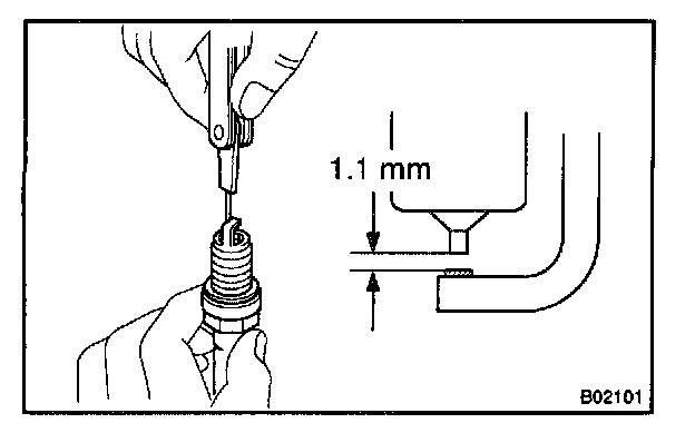 Correct electrode gap for new spark plug: 1.1 mm (0.043 in.)