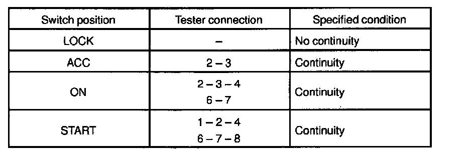1. INSPECT IGNITION SWITCH CONTINUITY