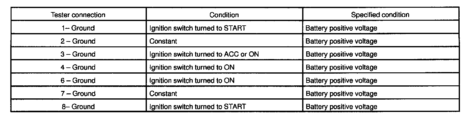 If circuit is not as specified, inspect the switch or wire harness.