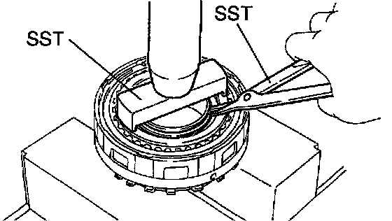 c. Place SST on the spring retainer, and compress the return spring with a press.