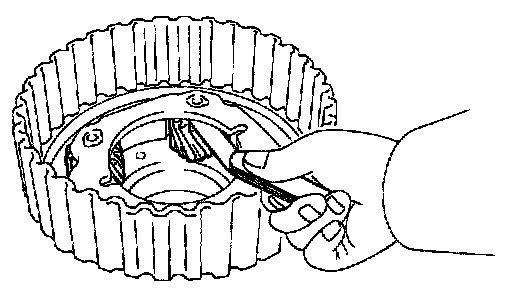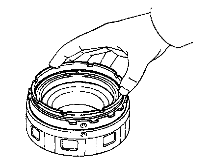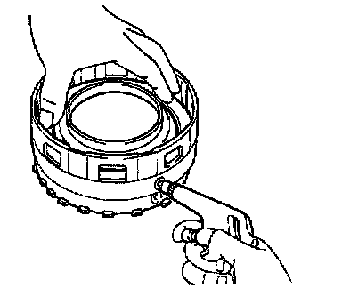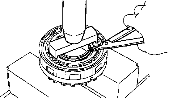 NOTICE: Be sure the end gap of the snap ring is not aligned with cutout portion of the brake drum.