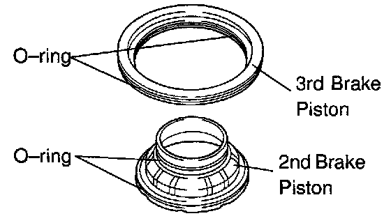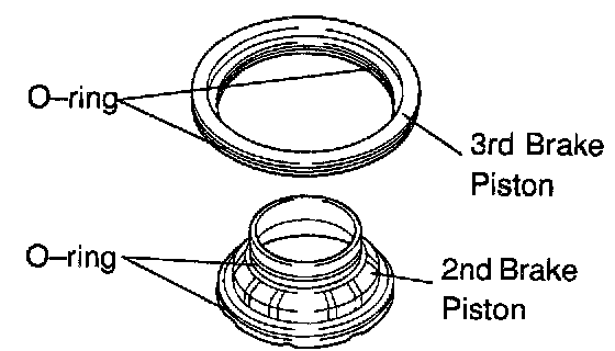c. Remove the 4 O-rings from the 3rd and 2nd brake pistons.